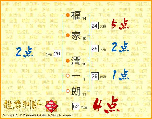 福家潤一朗さんの総運は52画の4点!