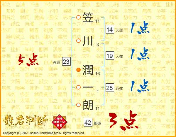 笠川潤一朗さんの天運は14画の1点!