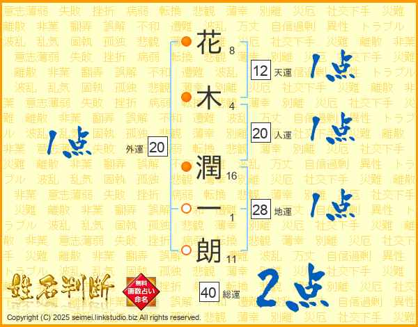 花木潤一朗さんの総運は40画の2点!