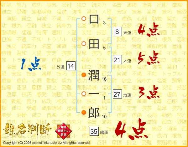 口田潤一郎さんの人運は21画の5点!