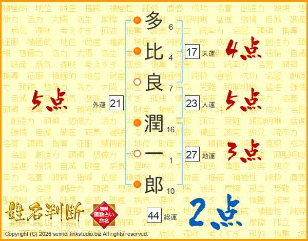 多比良潤一郎さんの総運は44画の2点!