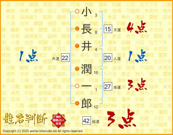 小(3画)長(8画)井(4画) 潤(16画)一(1画)郎(10画)