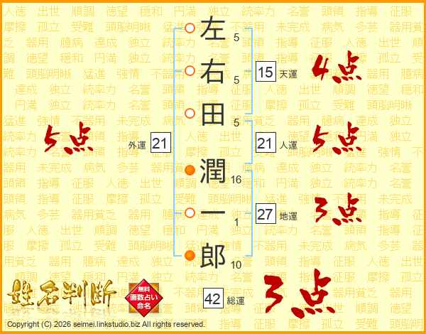 左右田潤一郎さんの総運は42画の3点!