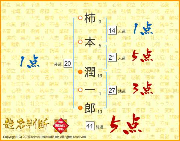 柿本潤一郎さんの人運は21画の5点!