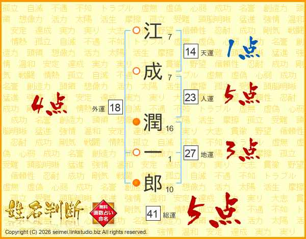 江成潤一郎さんの総運は41画の5点!