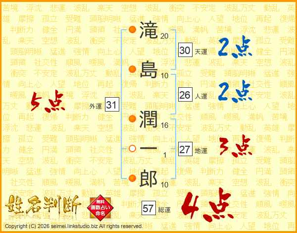 滝(20画)島(10画) 潤(16画)一(1画)郎(10画)