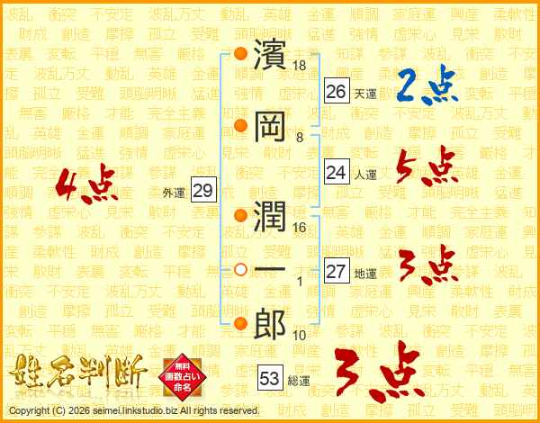 濱岡潤一郎さんの天運は26画の2点!