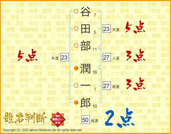 谷(7画)田(5画)部(11画) 潤(16画)一(1画)郎(10画)
