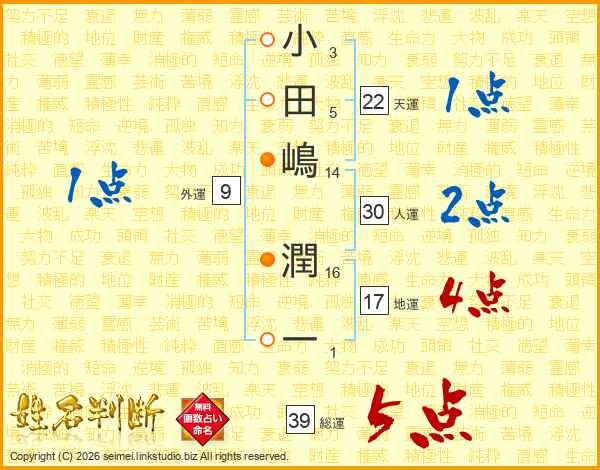 小田嶋潤一さんの総運は39画の5点!