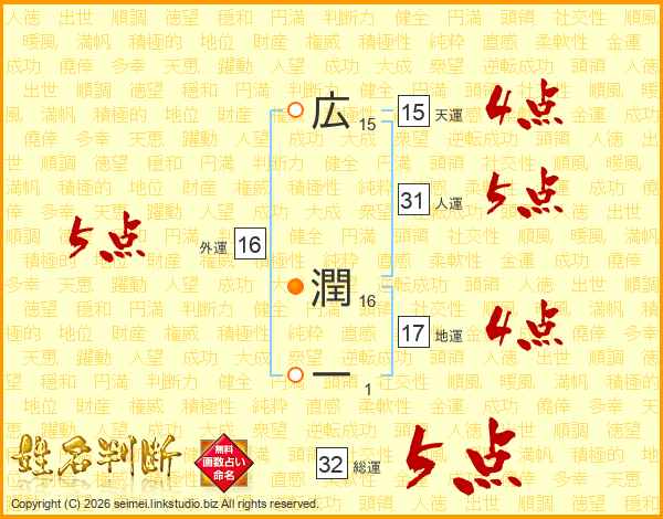 広潤一さんの総運は32画の5点!