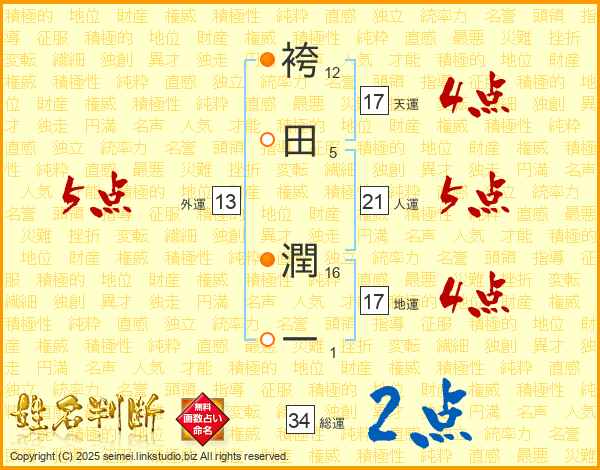 袴田潤一さんの天運は17画の4点!