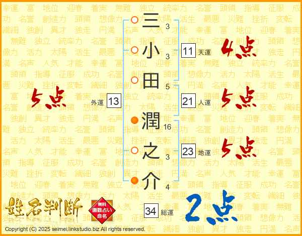 三小田潤之介さんの天運は11画の4点!