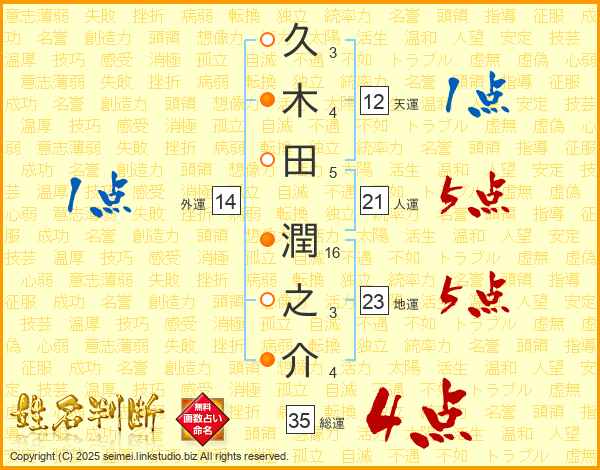 久(3画)木(4画)田(5画) 潤(16画)之(3画)介(4画)