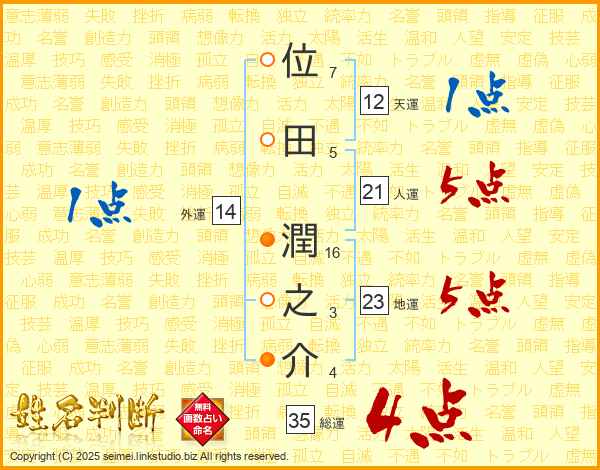 位田潤之介さんの総運は35画の4点!