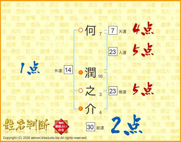 何潤之介さんの総運は30画の2点!
