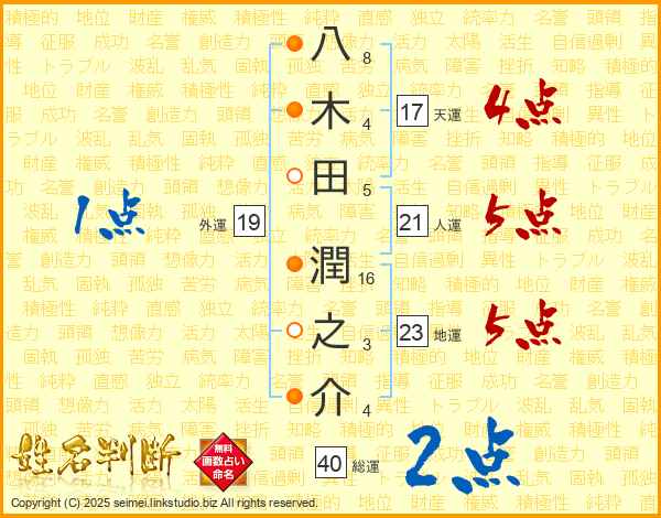 八(8画)木(4画)田(5画) 潤(16画)之(3画)介(4画)