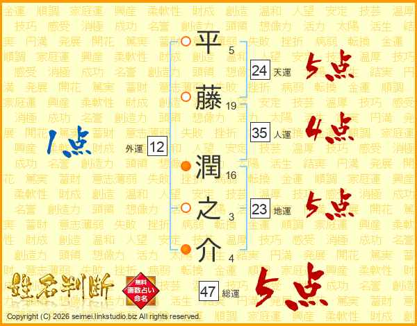 平藤潤之介さんの総運は47画の5点!