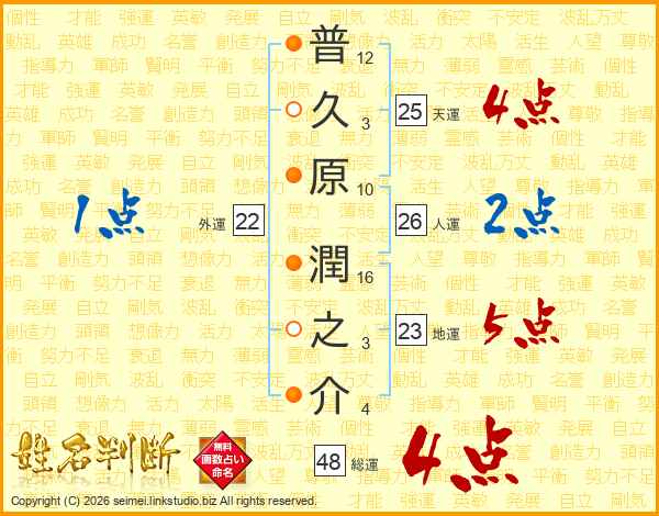 普(12画)久(3画)原(10画) 潤(16画)之(3画)介(4画)