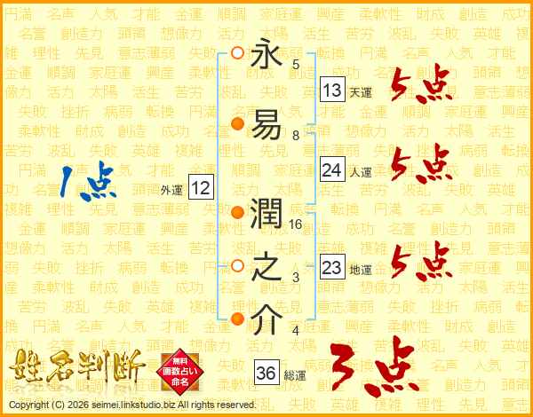 永易潤之介さんの人運は24画の5点!