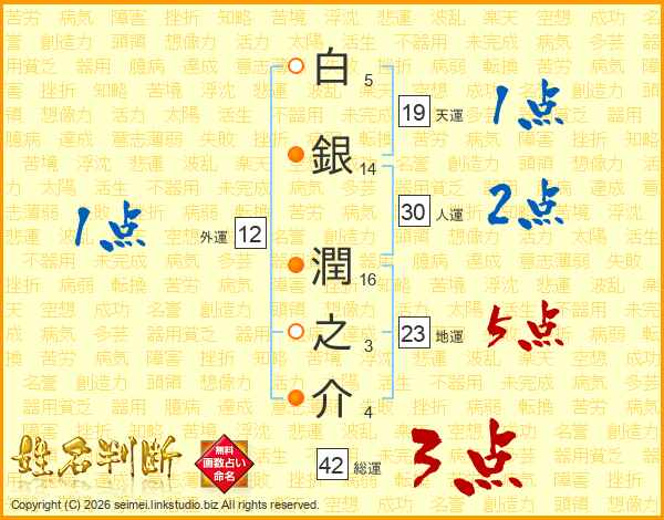 白銀潤之介さんの総運は42画の3点!