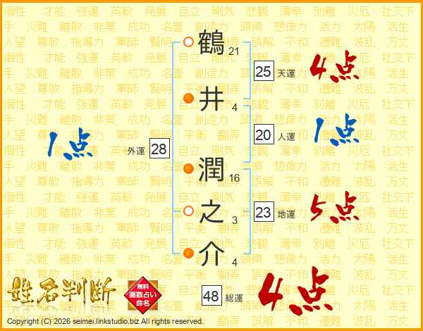 鶴井潤之介さんの天運は25画の4点!