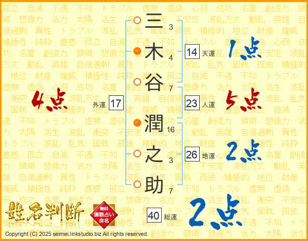 三(3画)木(4画)谷(7画) 潤(16画)之(3画)助(7画)