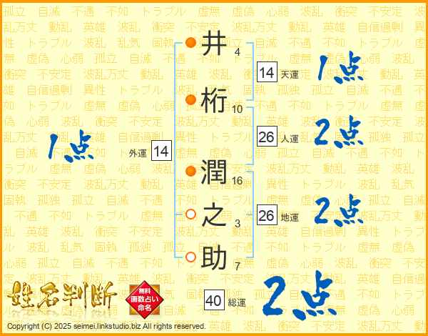 井(4画)桁(10画) 潤(16画)之(3画)助(7画)