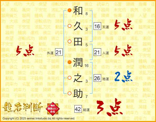 和(8画)久(3画)田(5画) 潤(16画)之(3画)助(7画)
