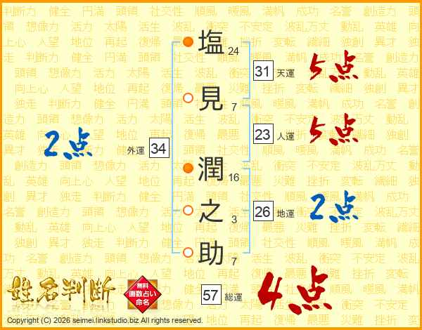 塩(24画)見(7画) 潤(16画)之(3画)助(7画)
