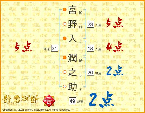 宮野入潤之助さんの総運は49画の2点!