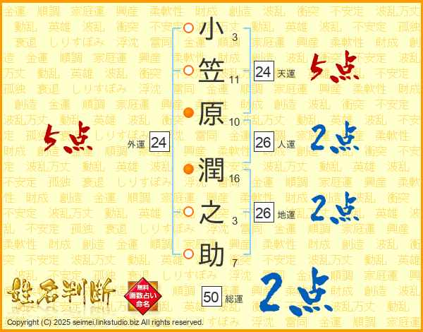 小笠原潤之助さんの総運は50画の2点!