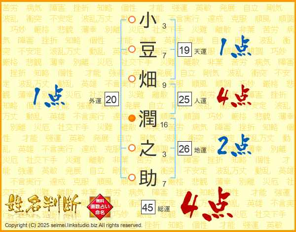 小豆畑潤之助さんの総運は45画の4点!