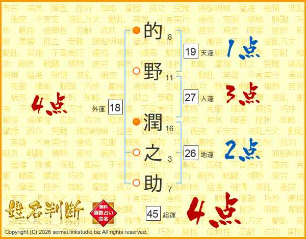 的野潤之助さんの地運は26画の2点!
