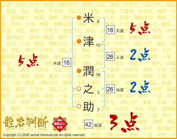 米津潤之助さんの総運は42画の3点!