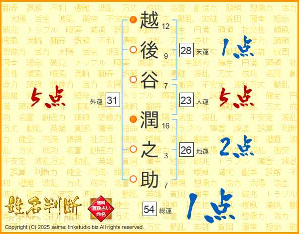 越後谷潤之助さんの外運は31画の5点!