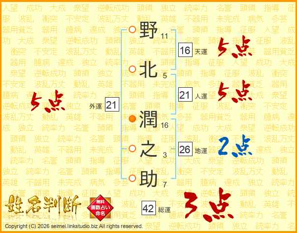 野北潤之助さんの外運は21画の5点!