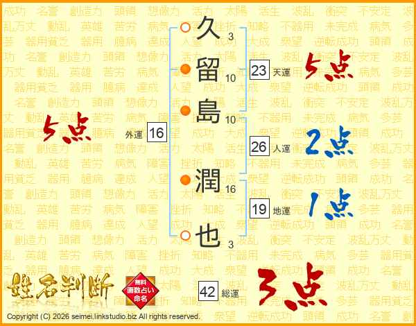 久留島潤也さんの人運は26画の2点!