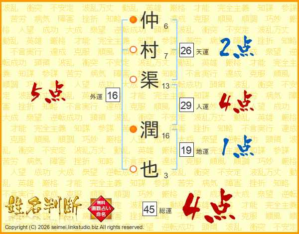 仲村渠潤也さんの総運は45画の4点!