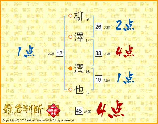 柳澤潤也さんの総運は45画の4点!