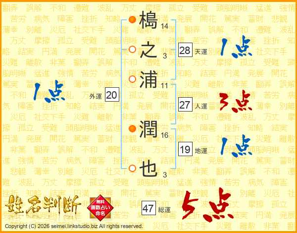 槝之浦潤也さんの総運は47画の5点!