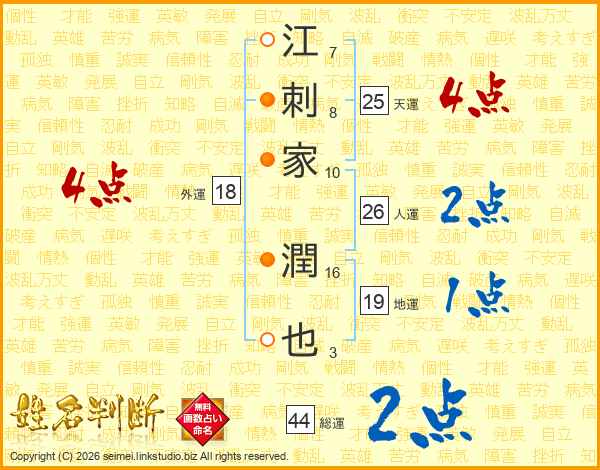 江刺家潤也さんの人運は26画の2点!