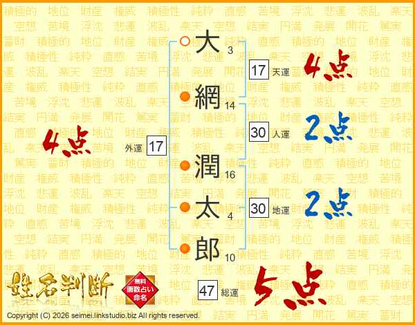 大網潤太郎さんの総運は47画の5点!