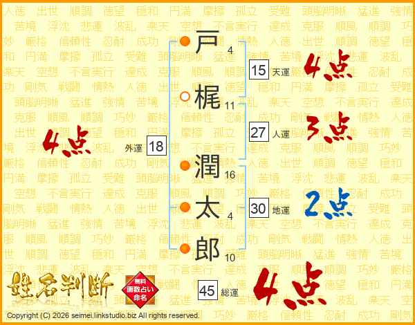 戸梶潤太郎さんの総運は45画の4点!