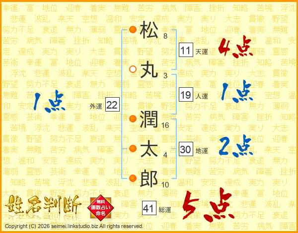松(8画)丸(3画) 潤(16画)太(4画)郎(10画)