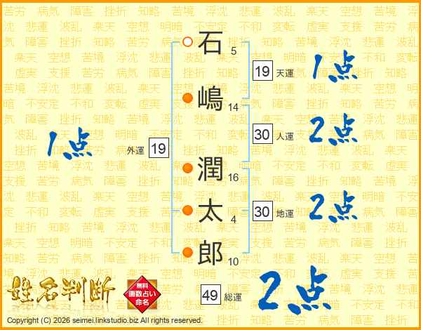 石嶋潤太郎さんの総運は49画の2点!