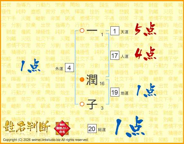一(1画) 潤(16画)子(3画)