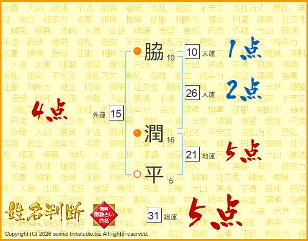 脇潤平さんの総運は31画の5点!