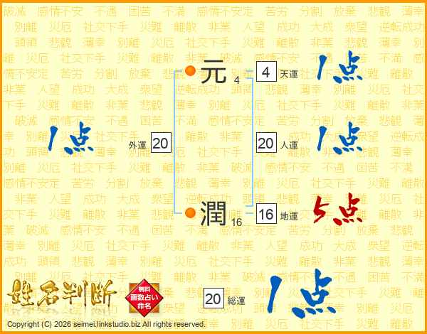 元潤さんの総運は20画の1点!