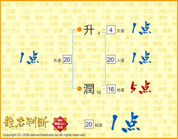 升潤さんの人運は20画の1点!