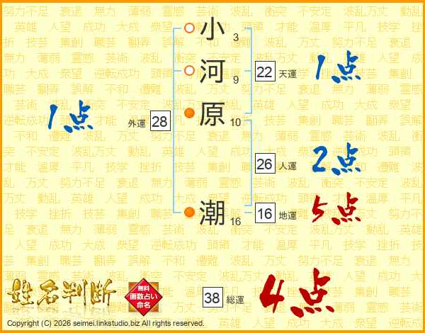 小河原潮さんの総運は38画の4点!